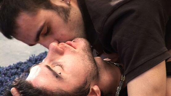 Once their last customer has left, two workers, who are rather close, walk down their scaffolding. They lie down on the floor and undress. The mere idea of getting caught by their boss turns them on like he...